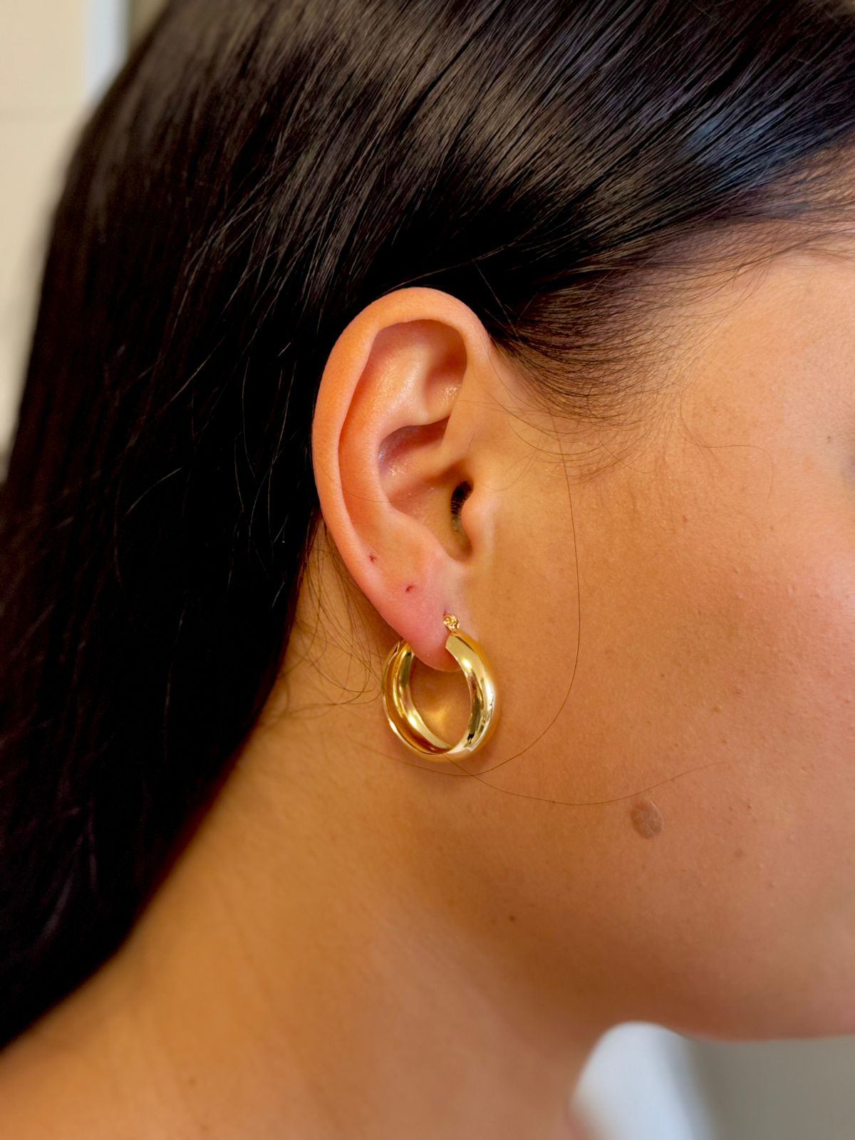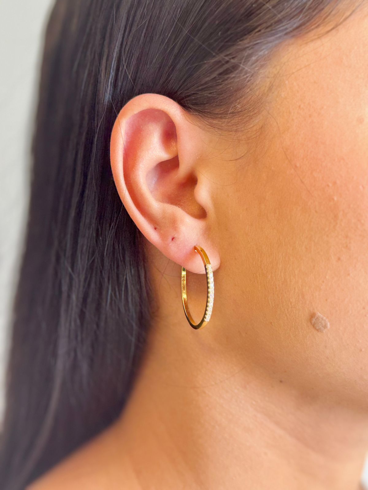 Brinco Argola com Detalhes em Círculos – Ródio Branco